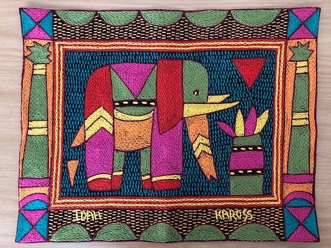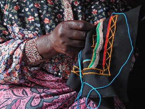 I set out to learn more about Palestinian clothing and I came across Lina Barkawi around this time. She’s a Palestinian-American tatreez practitioner. Initially, I had hoped to speak to her on my podcast about the traditional embroidery style - which she teaches online by the way, and I didn’t expect to find parallels between Palestinian and South African embroidery. Visually, they’re very different. Tatreez makes use of the cross stitch and the majority of South African embroidery makes use of chain, stem and straight stitches.